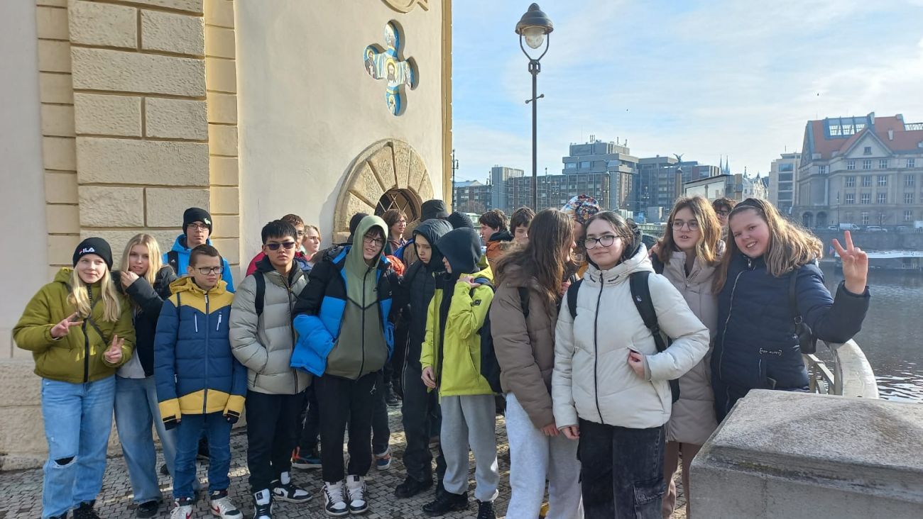 V rámci výuky dějepisu si sedmáci prohlédli expozici Praha Karla IV. - středověké město. Výlet do Prahy jsme spojili i s prohlídkou blízkého Staroměstského náměstí.