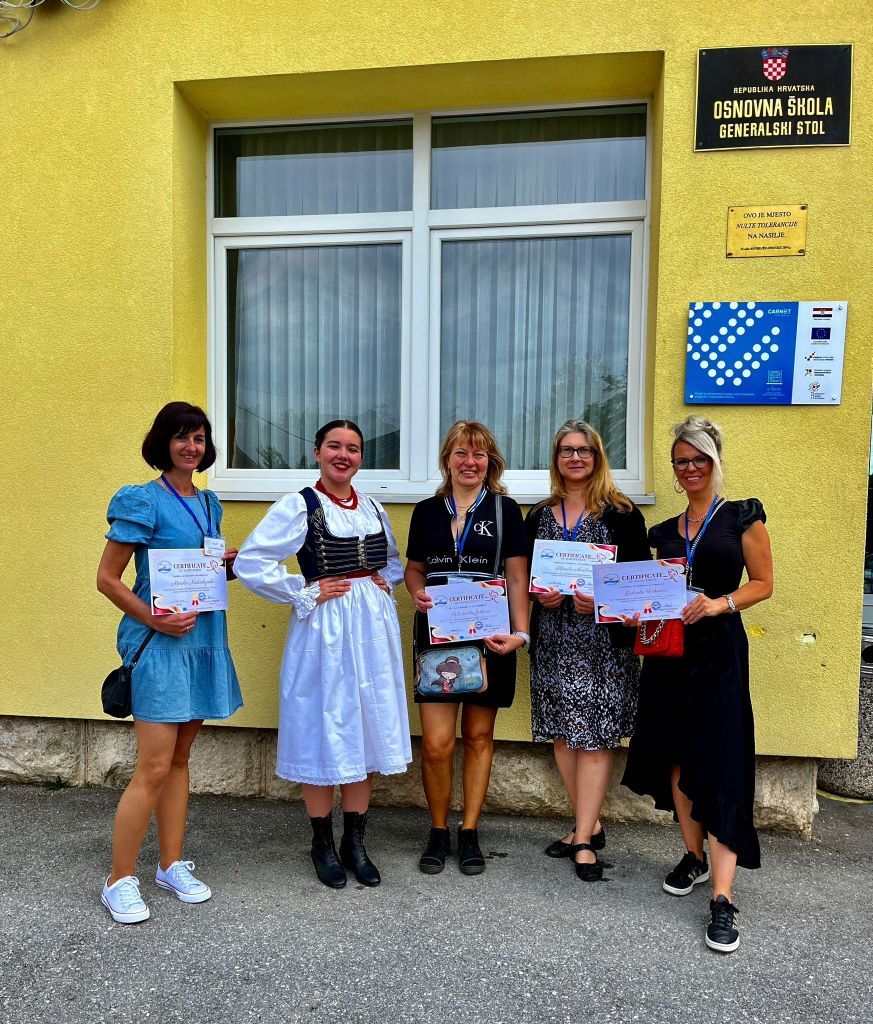 Ve dnech 13. - 17. 5. 2024 se čtyři učitelky z druhého stupně zúčastnily již druhé mobility v rámci programu Erasmus plus Use Your Heart, do kterého je naše škola zapojena. Po Konye v Turecku jsme se tentokrát vypravily do Chorvatska. Srdečně nás přivítaly chorvatské kolegyně ve městě Karlovac. Hned v pondělí jsme navštívily jejich školu a školku v obci Generalski Stol, setkaly se s kolegy z partnerských škol v Berlíně a Konye a také se se zástupcem odboru školství, starostou obce. Spolu s nimi jsme zhlédli představení folklórních tanců a zpěv dětského sboru, které si pro nás děti připravily. V rámci týdenního programu všichni zúčastnění absolvovali workshopy a semináře na téma Digitální kompetence, poznali jsme, jak pracují s dětmi v jiné zemi, s jakými problémy se potýkají, a měli tak možnost srovnání s naším školním systémem. Velice přínosná byla komunikace se všemi účastníky projektu.